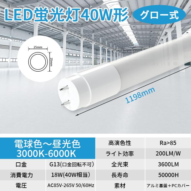 商品名:LED蛍光灯 40W形 T8(グロー式工事不要)