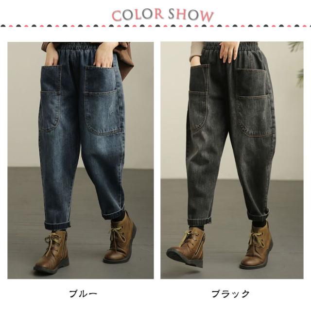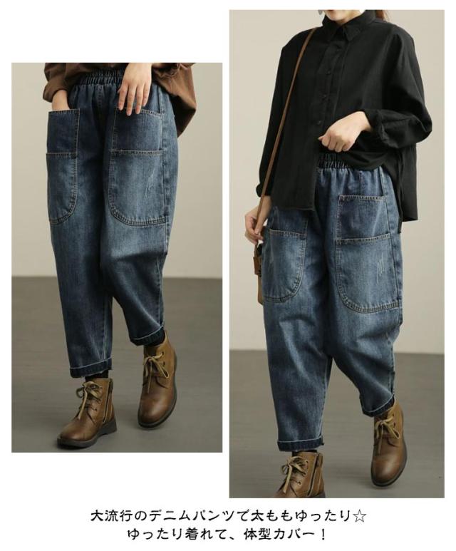 コクーンパンツ 薄手 レディース ジーンズ パンツ サルエルパンツ サルエル ゆったり 体型カバー 美脚 デニムサルエルパンツ ウエストゴム 個性派 ワイドパンツ ロング丈 デニム ボトムス 大きいサイズ 森ガール サルエル カジュアル