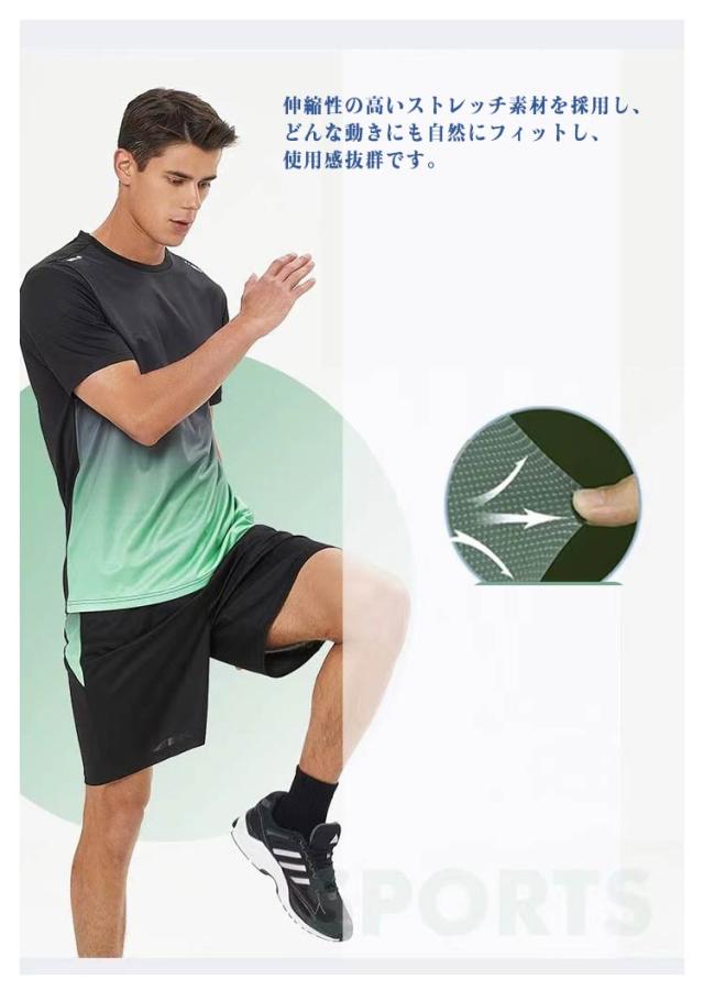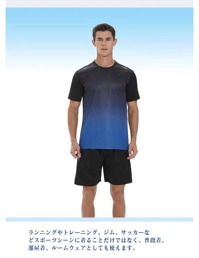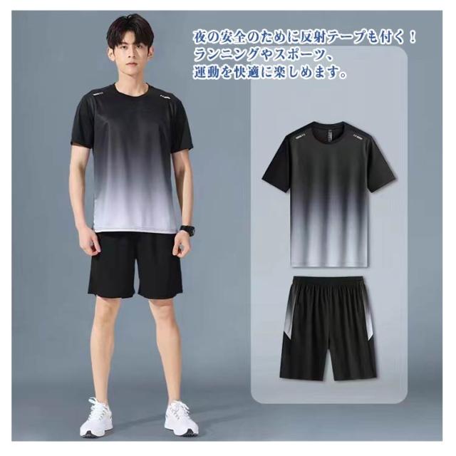 Tシャツ 吸汗速乾 半袖 上下セット ジャージ 接触冷感 スポーツウェア 反射テープ付き トレーニングウェア 通気性 ハーフパンツ ショートパンツ 部屋着 ランニングウェア スポーツウェア ルームウェア ストレッチ性 ひんやり