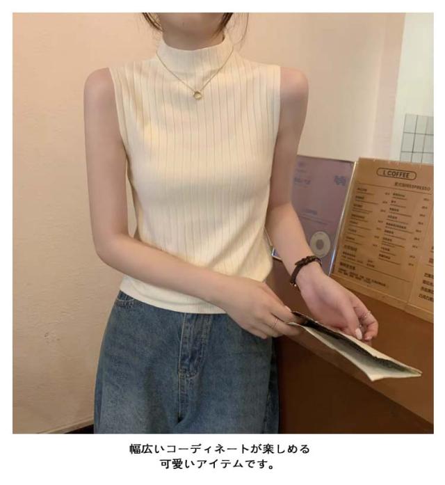 トップス 夏 タンクトップ キャミソール ノースリーブ Tシャツ ストレッチ ハイネック シンプル リブ レイヤード ハイネックニット 春 ニットトップス 全4色 サマーニット XS S M L きれいめ タンクトップ 韓国ファッション インナー 通勤 袖なし
