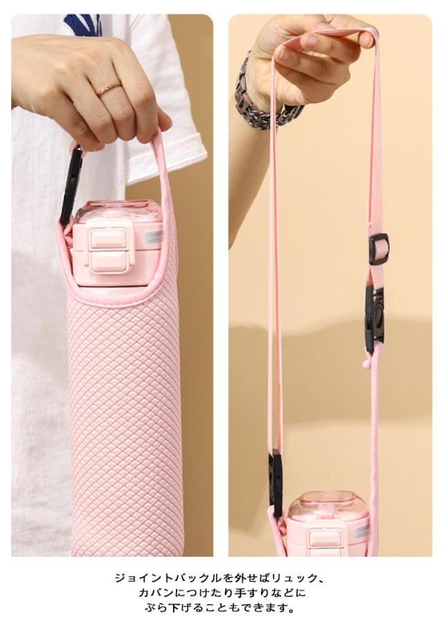 | 【水筒カバー】【4サイズ】 【手提げ・ショルダー2WAY】 手提げ部分を持ってそのまま持ち運んでもOK。 付属のストラップを付けて肩掛での持ち運びも可能! ジョイントバックルを外せばリュック、カバンにつけたり手すりなどにぶら下げることもできます。 衝撃吸収に優れたネオプレン素材を採用。 大切なボトルを守ります! | |