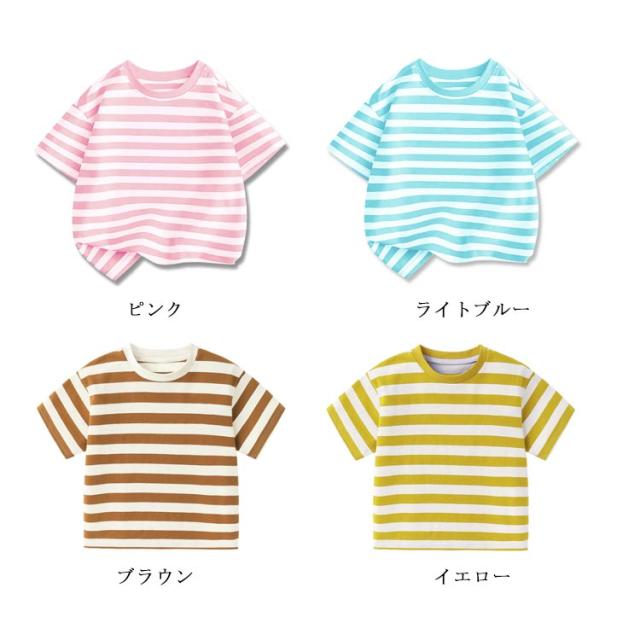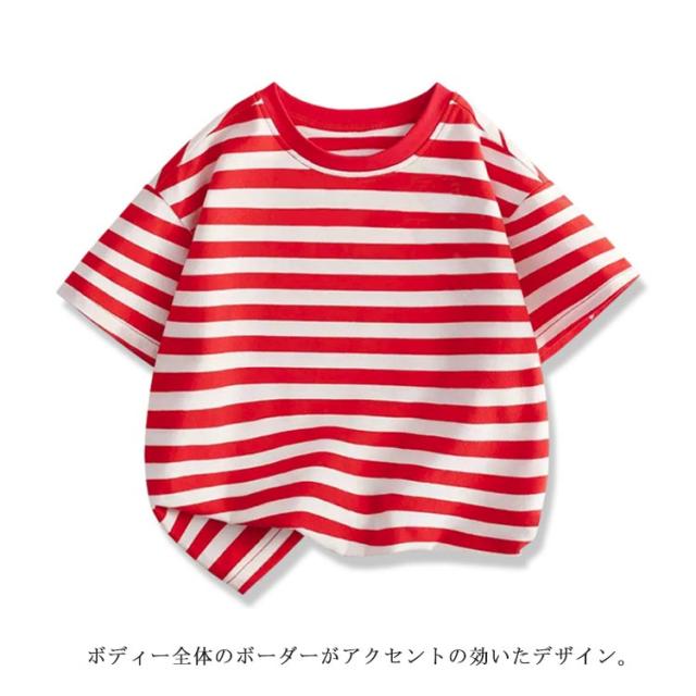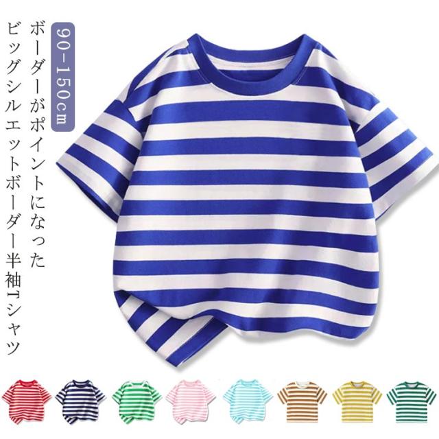 トップス ビッグシルエット 半袖Tシャツ ボーダー ビッグシルエット ベビー服 男の子 女の子 Tシャツ 子供服 ラウンドネック ボーダー 半袖 Tシャツ キッズ 夏服