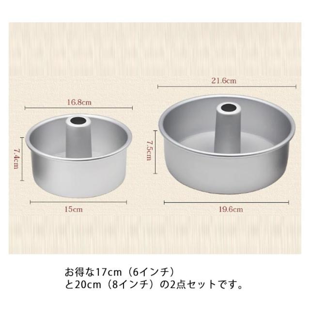 17cm+20cmの2個セット シフォンケーキ型 20cm 17cm+20cmの2個セット つなぎ目のない シフォンケーキ型 17cm ケーキ型 2WAY 底取 アルミ製 スポンジ型 シフォン金型 製菓型 焼き型 お菓子作り 母の日
