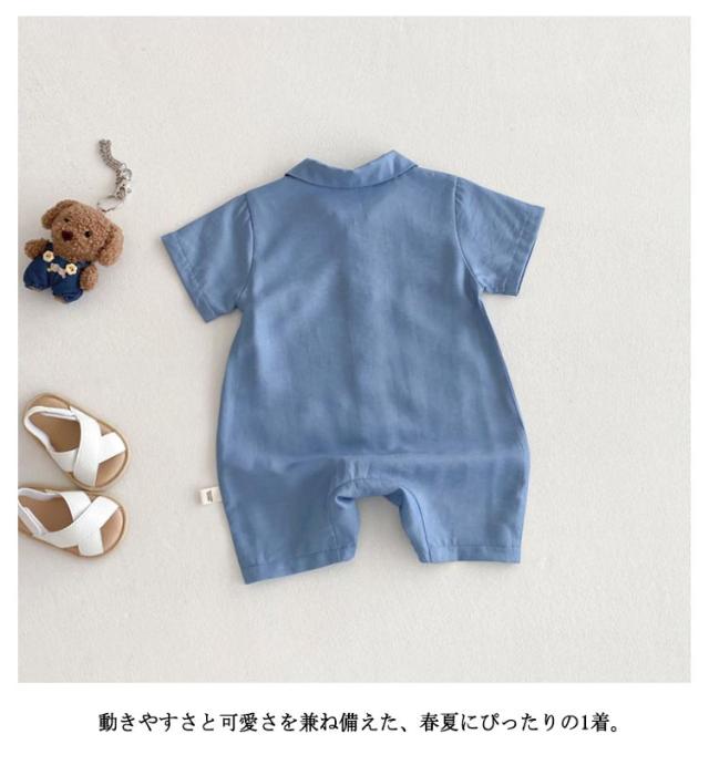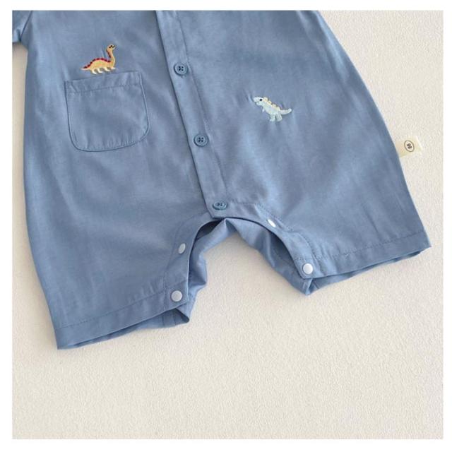韓国風 男の子 女の子 ロンパース 夏 着脱簡単 夏服 半袖 ベビー服 新生児 ジーンズ風 恐竜 ベビー服 スナップボタン 立体刺繍 かわいい オシャレ 子供服 カバーオール お出かけ 出産祝い ギフト 66 73 80