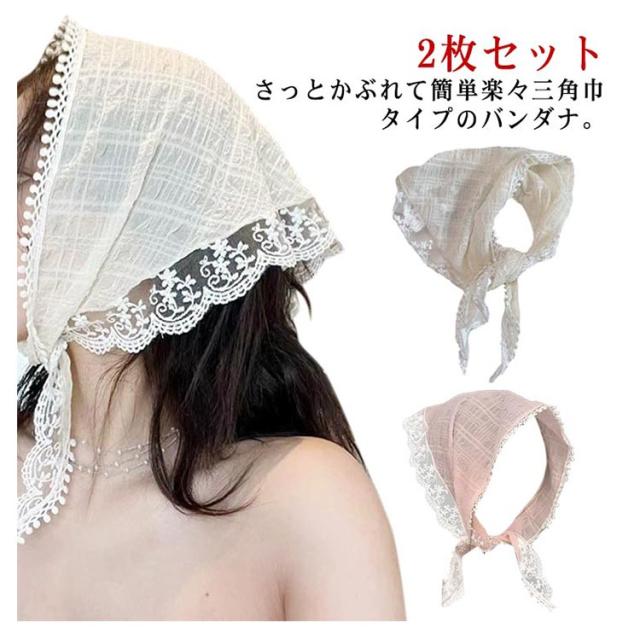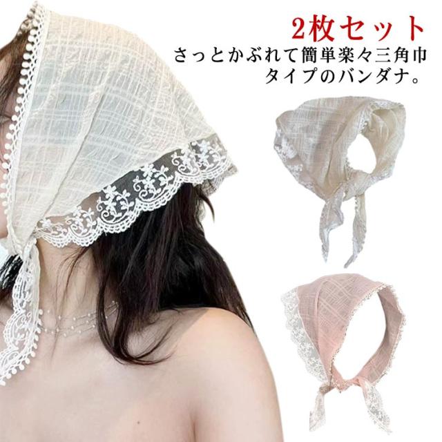 レース レディース 春 夏 バブーシュカ バンダナ 2枚セット ヘアバンド 2枚セット 写真撮影 三角巾 ヘッドアクセサリー スカーフ かわいい カチューシャ シンプル フェス 小顔効果 可愛い カジュアル トレンド 旅行 プレゼント