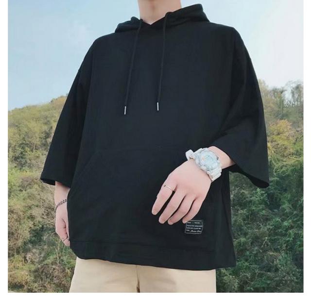 メンズ 半袖パーカー パーカー 半袖 パーカー フード付きtシャツ プルオーバーパーカー 冷感 春服 薄手パーカー 薄手 トップス 大きいサイズ 無地 シンプル 夏 韓国 白 黒 ホワイト ブラック
