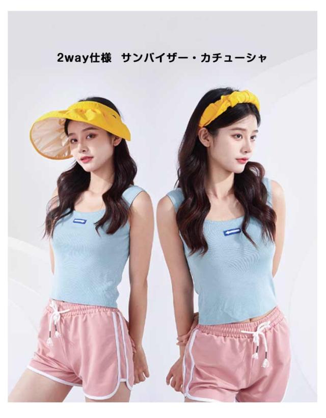 軽量 日除け つば広 サンバイザー 2WAY サンバイザー ハット 日よけ帽子 カチューシャ UVカット 遮光 折りたたみ お洒落 紫外線対策 熱中症予防 レディース 日焼け防止 小顔効果抜群 スポーツ 散歩 お出かけ 旅行 夏物 韓国ファッション