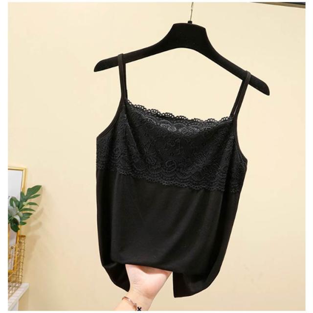 タンクトップ 胸元レースキャミソール レディース インナー レース キャミソール インナー 伸縮性 重ね着 吸汗 無地 タンクトップ 【2枚セット】 柔らかい オシャレ おしゃれ インナー 肌着 アンダーウェア 着痩せ 部屋着 下着 ブラック 白