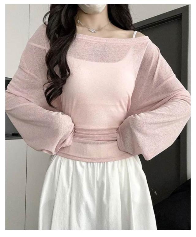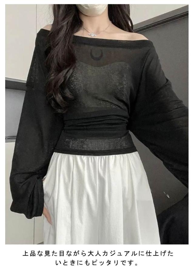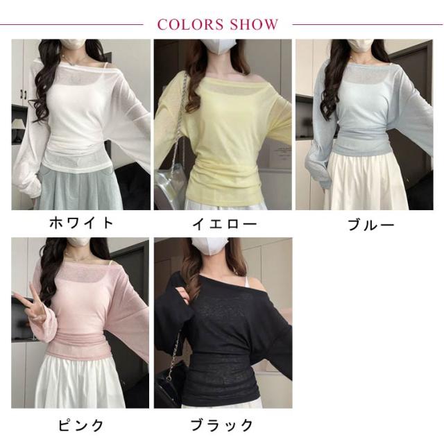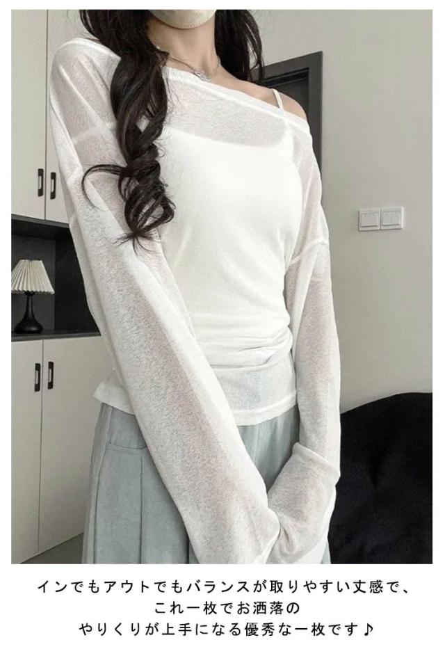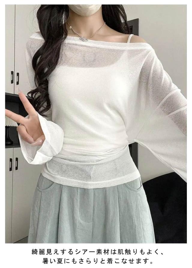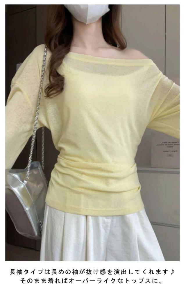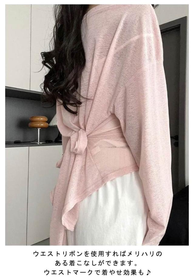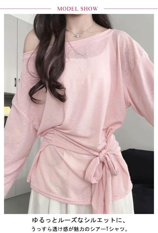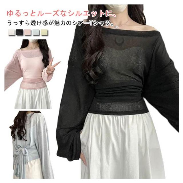 トップス tシャツ シアーカットソー ロンT シアー レディース 長袖 春 Tシャツ 夏 レイヤード 無地tシャツ カットソー ウエストリボン プルオーバー トップス クルーネック ロングスリーブ かわいい 着やせ 体型カバー 細見え リラックス