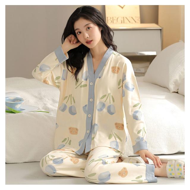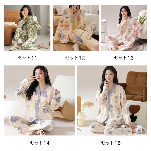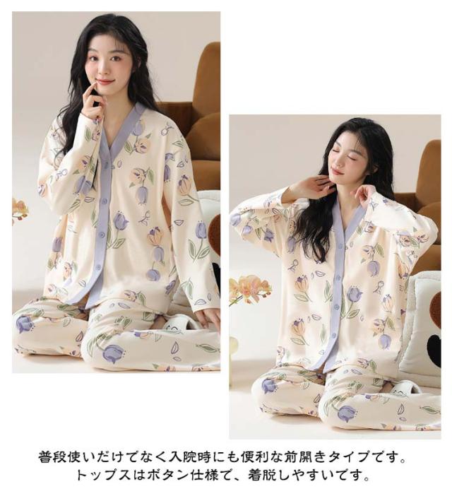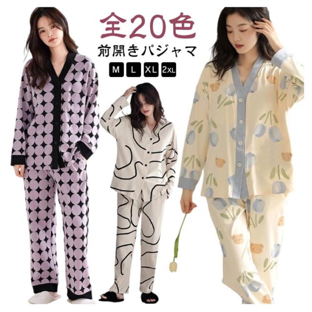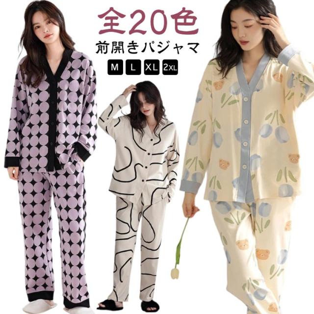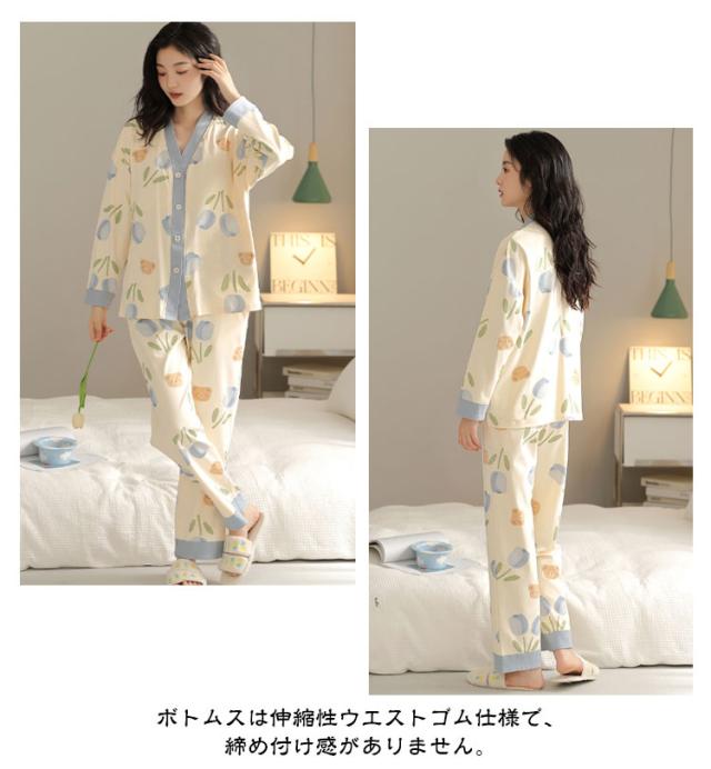 パジャマ ロングパンツ 上下セット 薄手 セットアップ レディース 前開き パジャマ 長袖 ルームウエア 花柄 秋 リラックス アニマル柄 部屋着 ウエストゴム かわいい ナイトウェア 大きいサイズ ワンマイルウェア 可愛い 婦人 女性