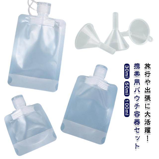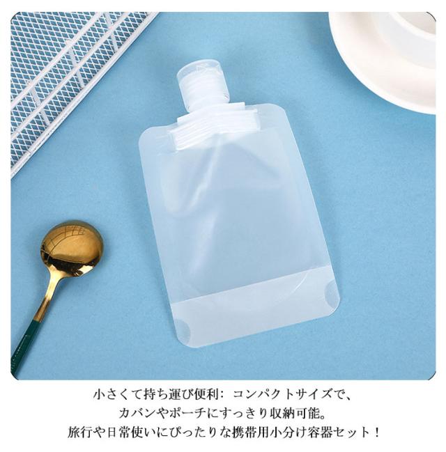 | 旅行や出張に大活躍!携帯用パウチ容器セット 幅広い用途に対応: 化粧水、乳液、洗顔料、シャンプー、ボディソープなど、様々な液体を携帯OK。 【便利ポイント】 ・小さめサイズで軽量&省スペース ・丈夫で柔らかなPET素材 ・大口径設計で詰め替えが簡単 ・洗って繰り返し使えるエコ仕様 ・18個入りでたっぷり使えるお得セット ・漏斗付きで液体の注入もスムーズ 小さくて持ち運び便利: コンパクトサイズで、カバンやポーチにすっきり収納可能。旅行や日常使いにぴったりな携帯用小分け容器セット! | |