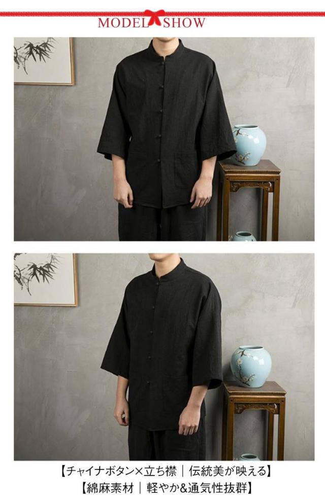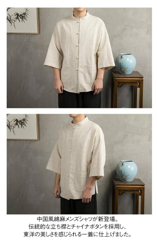 綿麻 チャイナシャツ 春夏 立ち襟 メンズシャツ メンズ トップス チャイナボタン 七分袖 カジュアルシャツ シャツ ナチュラル 中華風 M−5XL