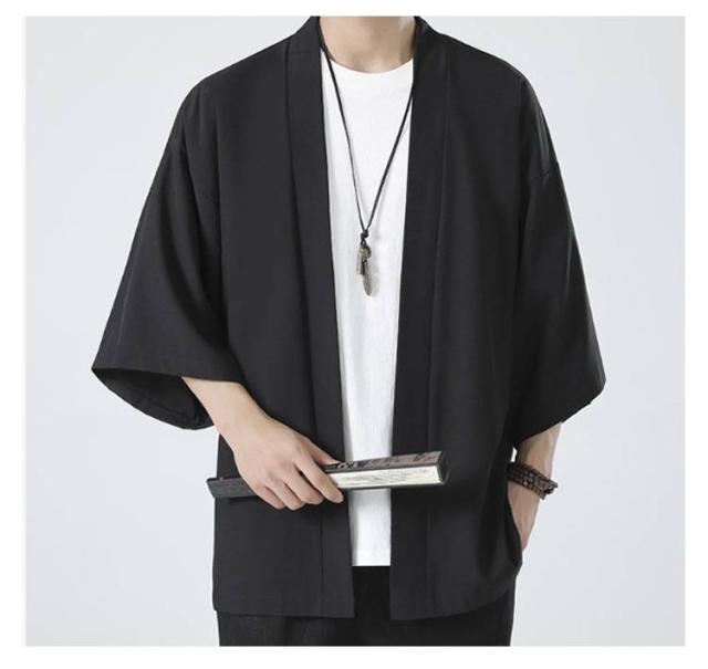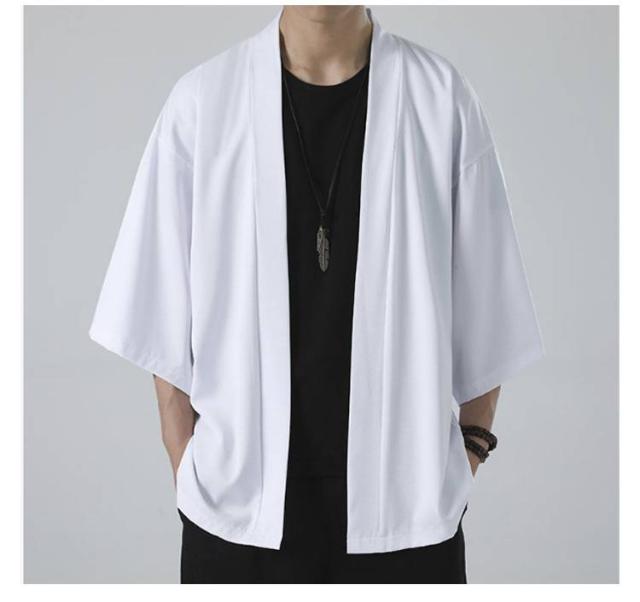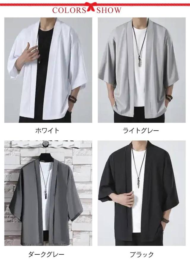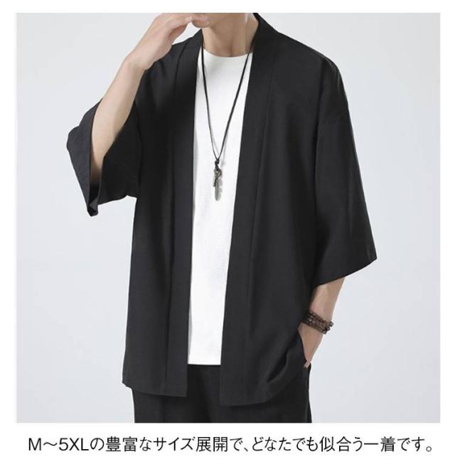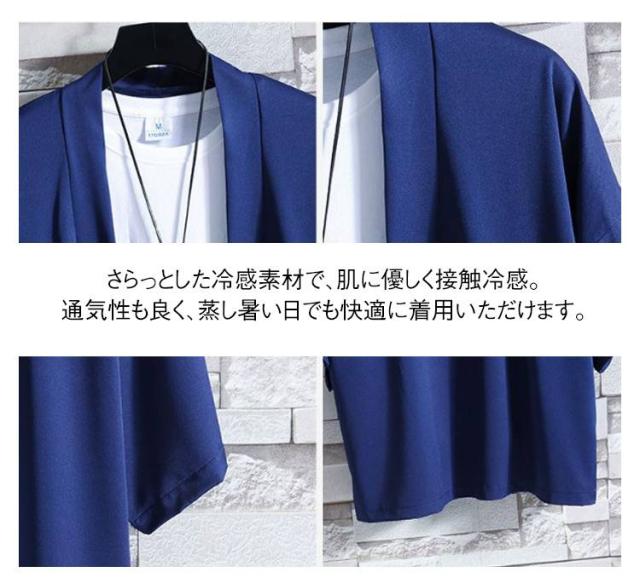 メンズ 薄手 アイスシルク 羽織り 七分袖 涼しい 上着 夏服 カジュアルシャツ 和風カーディガン 日焼け防止 カーディガン 男性用
