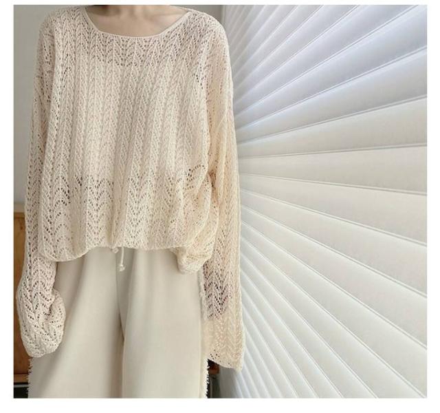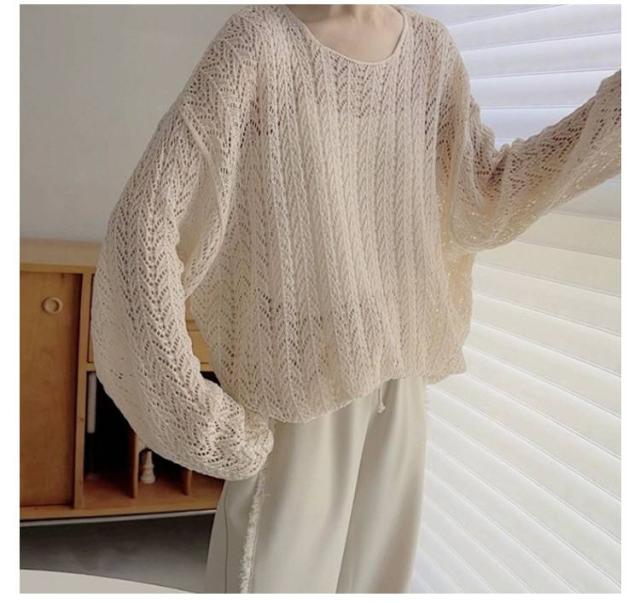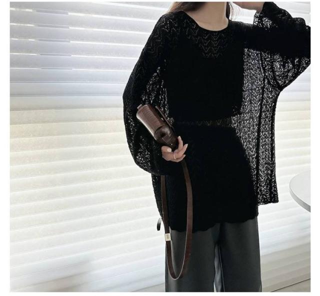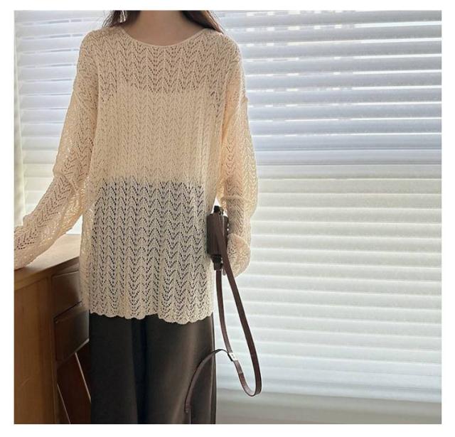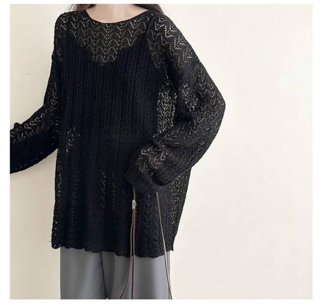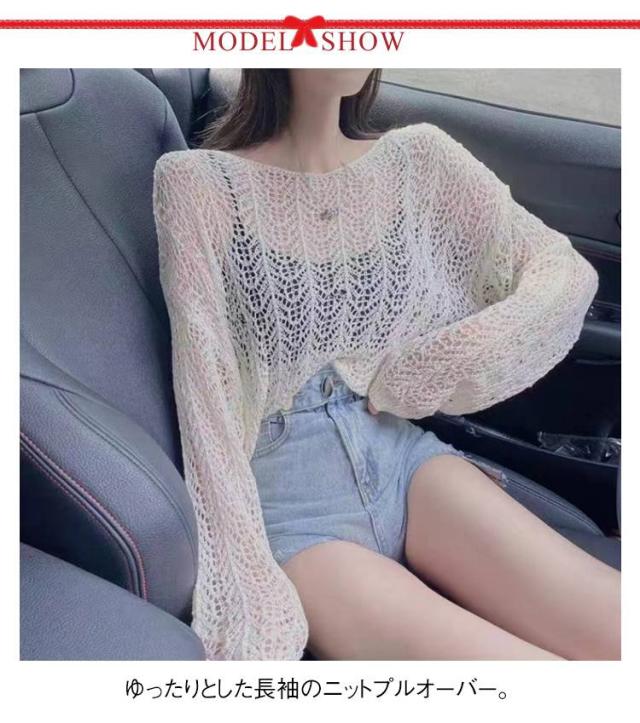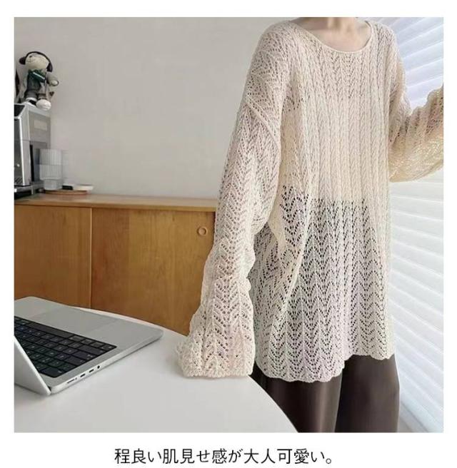長袖 2025年春新作 ゆったり ルーズ 2025年春新作 シースルー ニットプルオーバー トップス 透かし編み スリット サマーニット 通気性 おしゃれ 春夏 レイヤード