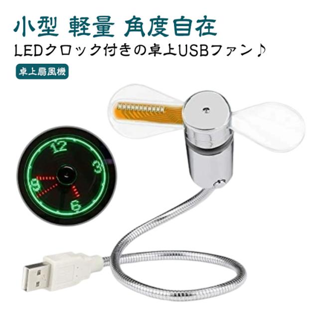 軽量 小型 卓上ファン LEDアナログ時計が浮かぶ 角度自在 扇風機 フレキシブル LEDディスプレイクロック LEDクロックファン アナログ時計 浮かび上がるイルミネーション LEDアナログ時計が浮かぶ アナログ時計 卓上扇風機 LEDライト表示時間