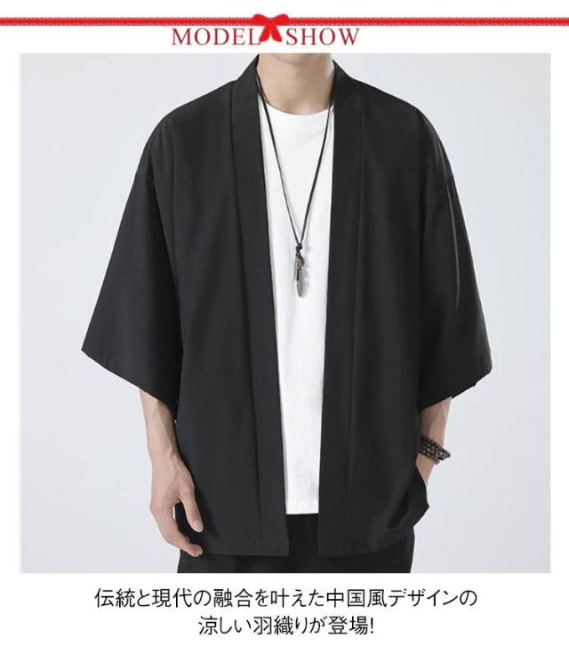 夏服 和風カーディガン 七分袖 和風カーディガン 羽織り 薄手 上着 日焼け防止 カジュアルシャツ アイスシルク 涼しい カーディガン 男性用