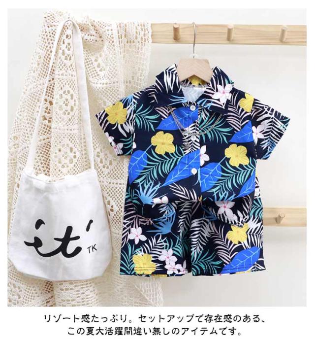 2点セット 女の子 ビーチ ショートパンツ 男の子 140 アロハシャツ 半袖シャツ セットアップ 子供服 キッズ ハーフパンツ 上下セット 子ども 全15色 ベビー服 ジュニア 春夏 リゾート 海 総柄 旅行 ギフト 80 90 100 110 120 130 全15色 150