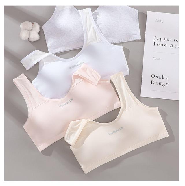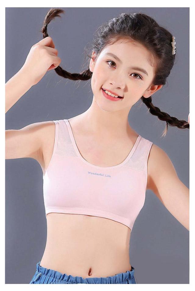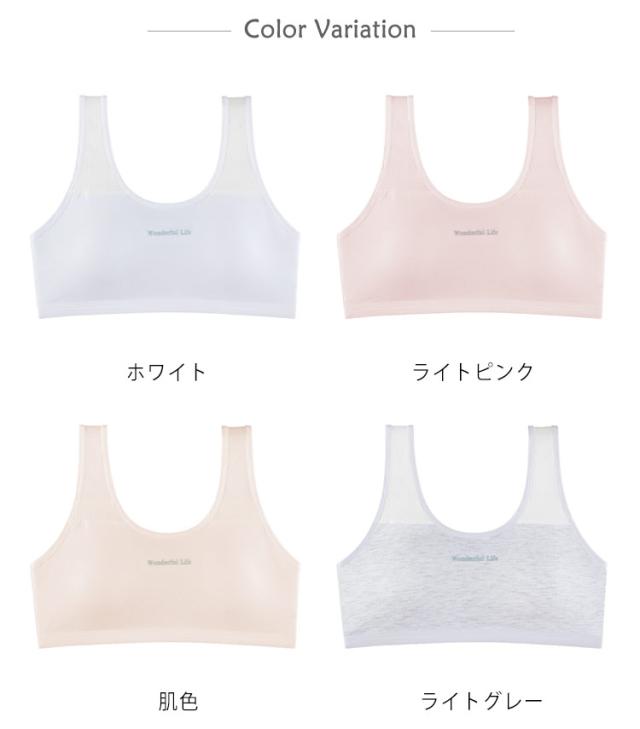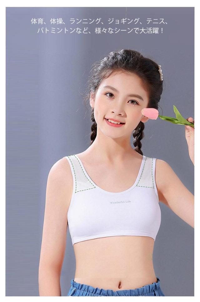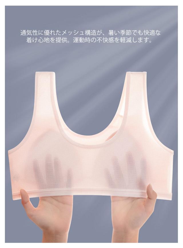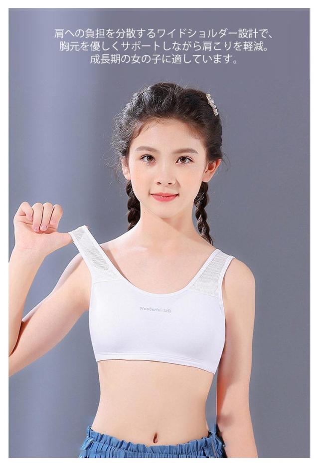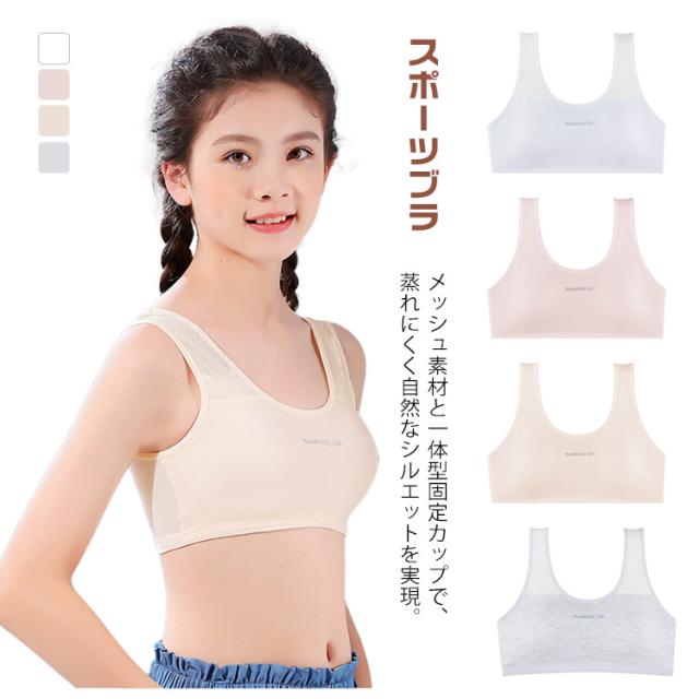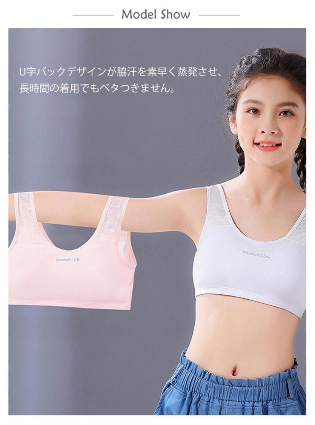 ジュニア ブラジャー 通気性 女子 ワイドショルダー メッシュ キッズ 小学生 固定カップ 中学生 ノンワイヤー 汗冷え防止 春 夏 スポーツブラ 脇汗対策 秋 スポーツ下着 ランニング 蒸れない かわいい
