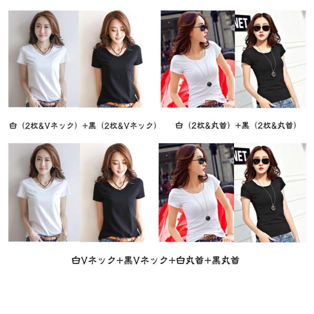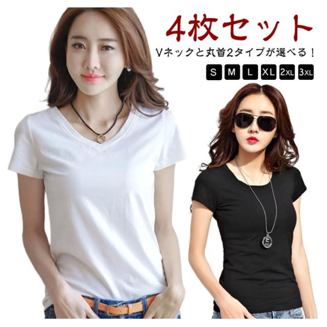 インナー 【4枚セット】 無地 Tシャツ カジュアル 半袖 S 無地tシャツ クルーネック カットソー 【4枚セット】 白Tシャツ インナーシャツ 丸首 シンプル きれいめ 夏 スリム 薄手 韓国 大きいサイズ レディース 送料無料 Vネック M L XL 2XL