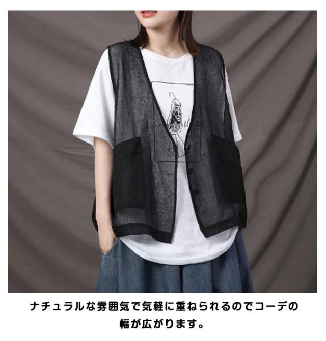 サマーベスト 無地 春 コットン 秋 涼しい 夏 ジレベスト トップス 薄手 レディース きれいめ 前開き シアー カーディガン ノースリーブ ベスト 透け 重ね着 綿 レイヤード チョッキ 羽織り ライトアウター ジレ カジュアル ポケット 大人 可愛い