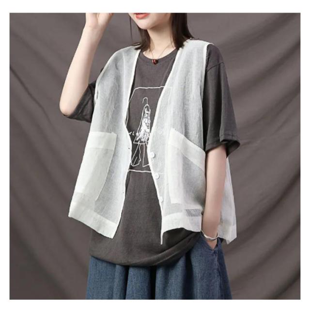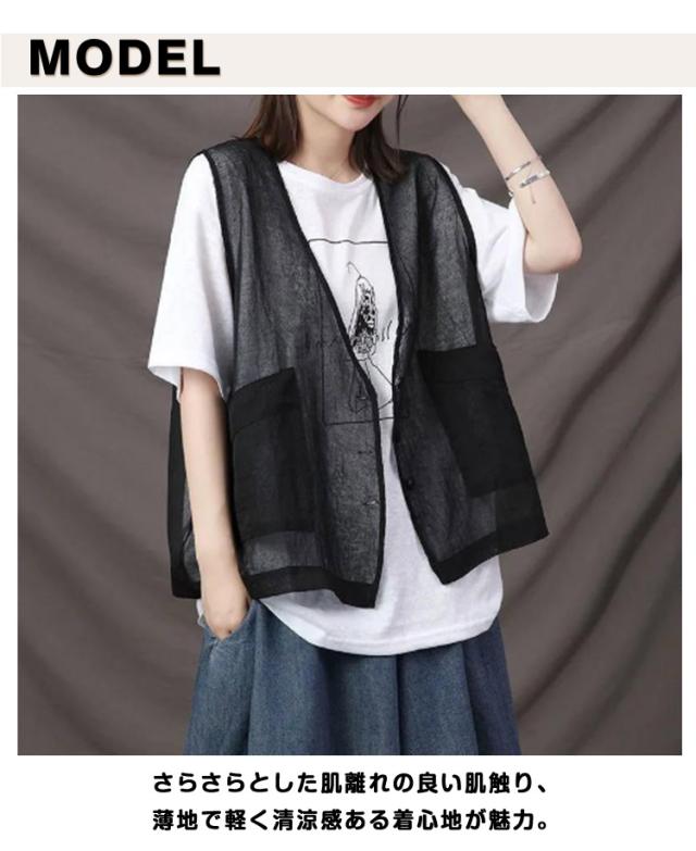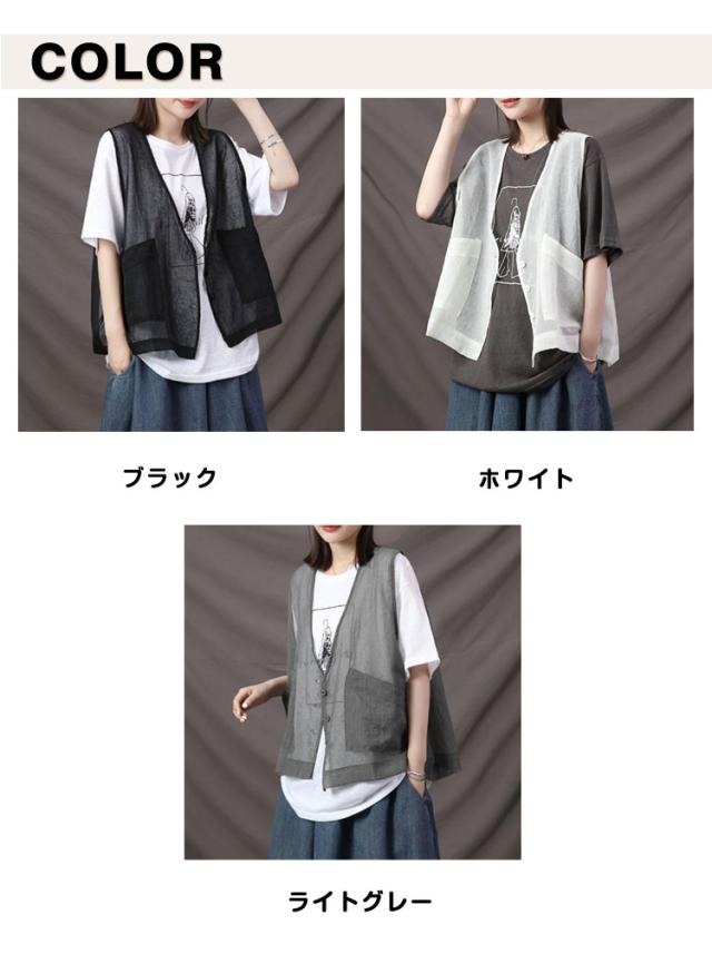 春 ベスト レディース カーディガン シアー ベスト サマーベスト ジレベスト 前開き 秋 薄手 透け 涼しい トップス コットン 重ね着 無地 レイヤード 夏 綿 ジレ チョッキ 羽織り ライトアウター きれいめ カジュアル ポケット 大人 可愛い