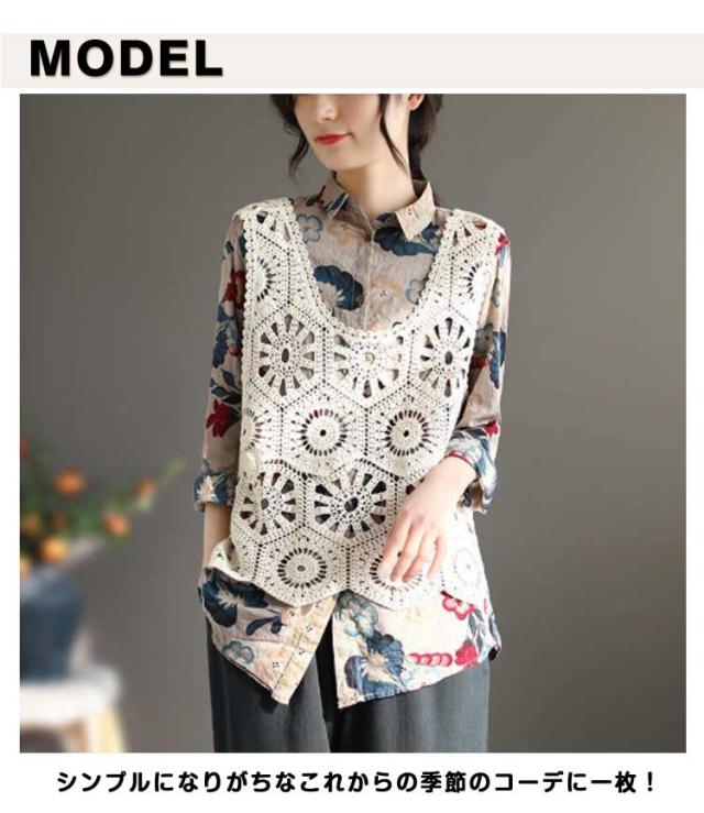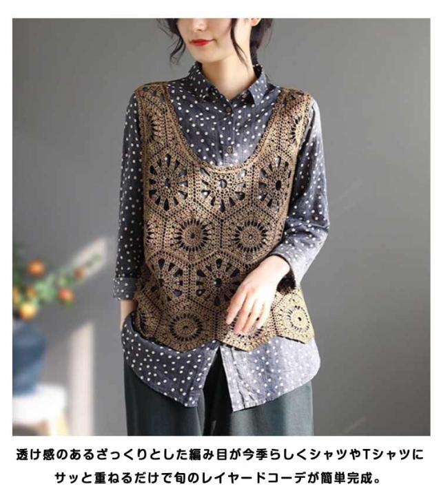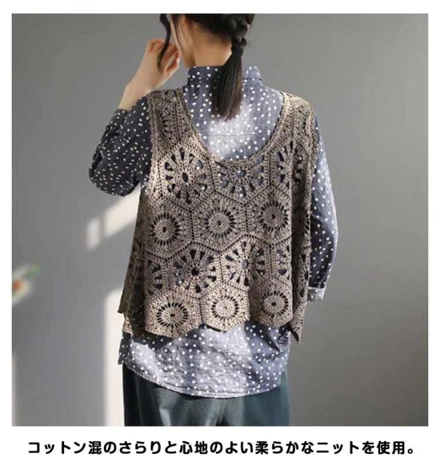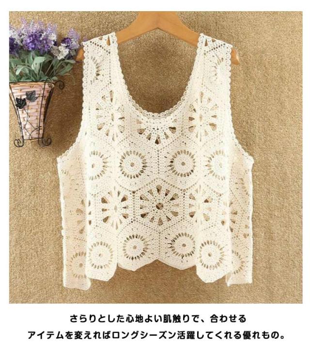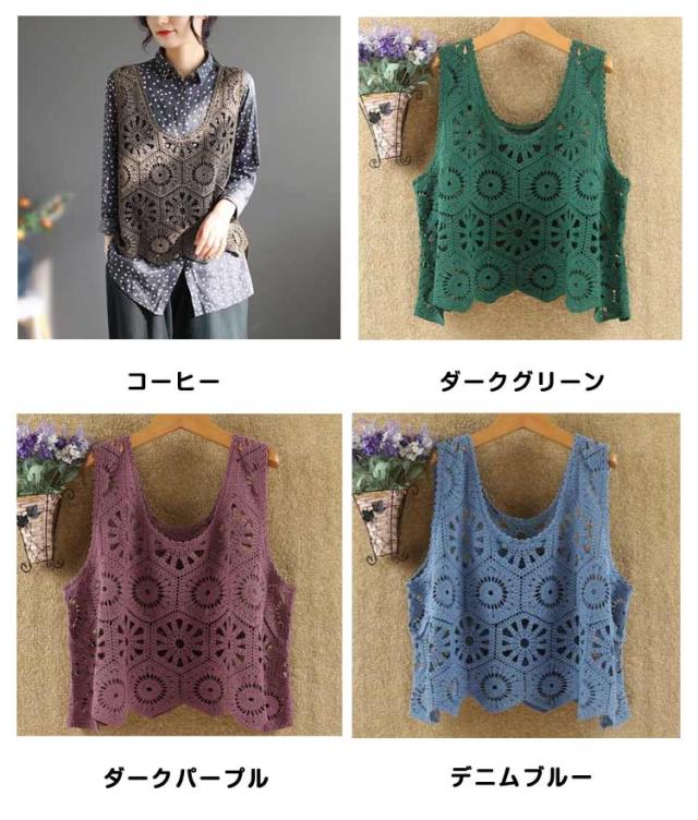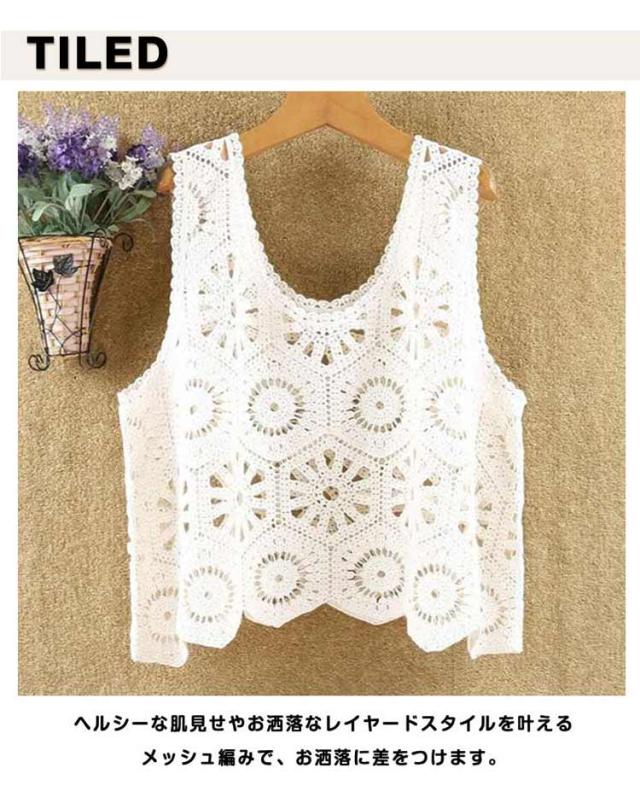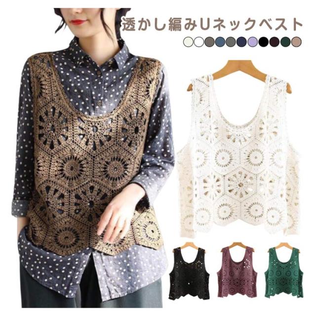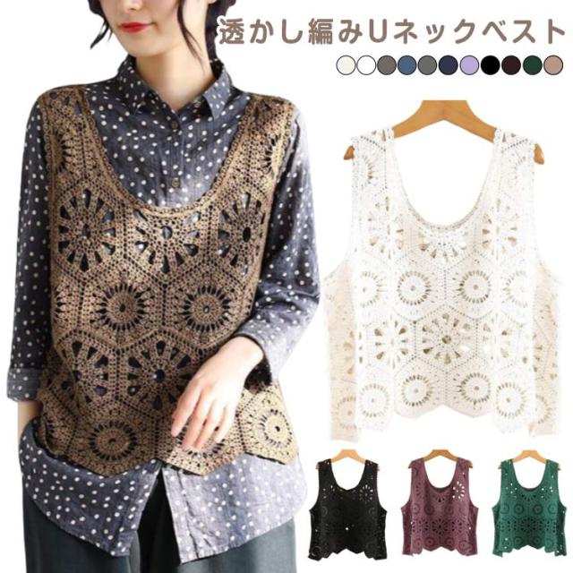 送料無料 レイヤード きれいめ プルオーバー ニットベスト Uネック 花柄 春夏 ベスト クロシェ編み かぎ編み レース 透かし編み ノースリーブ サマーニット カジュアル 秋 おしゃれ 無地 袖なし 重ね着 レディース 春 夏 送料無料 おしゃれ かわいい