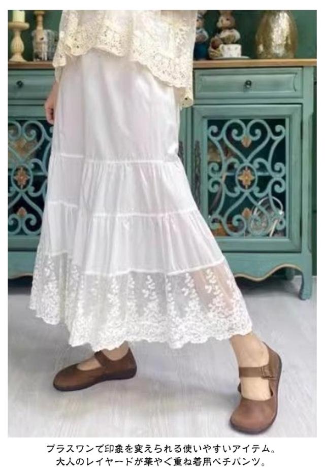 ペチコート ペチパンツ レース ペチパンツ 裾 インナー パンツ 春夏秋 下着 フリル 重ね着 レディース おしゃれ 裾レース付きペチパンツ ペチコート マキシ丈 ワイドパンツ ゆったり ボトムス 体型カバー ウエストゴム 大きいサイズ 透けない 透け防止 黒 白 送料無料 M L