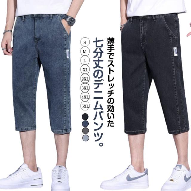 クロップドパンツ ハーフパンツ 膝下丈 薄手 クロップドパンツ ショートパンツ デニムパンツ デニムパンツ デニムショートパンツ メンズ 7分丈 パンツ カジュアル 短パン ストレッチ 七分丈 春 夏 カーゴパンツ デニム 大人 学生 黒 ブルー グレー 無地 大きいサイズ