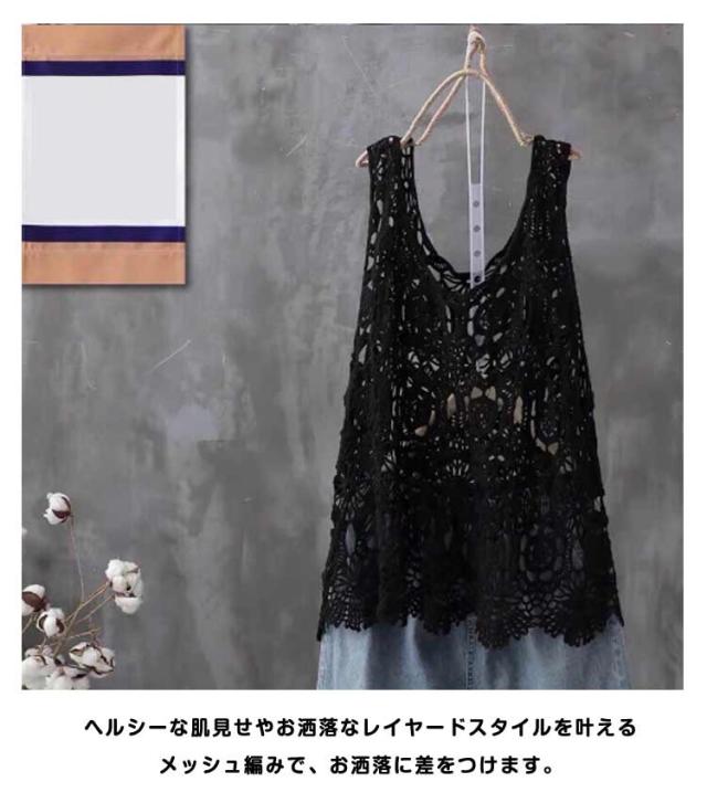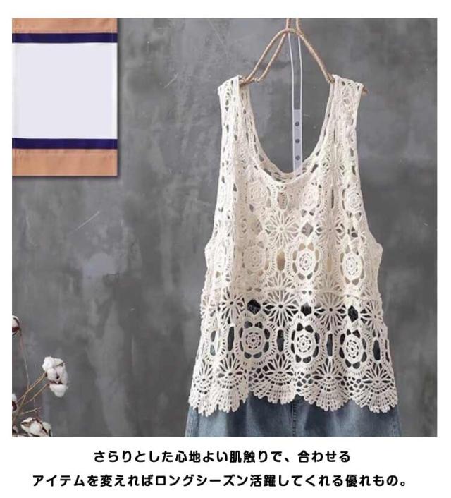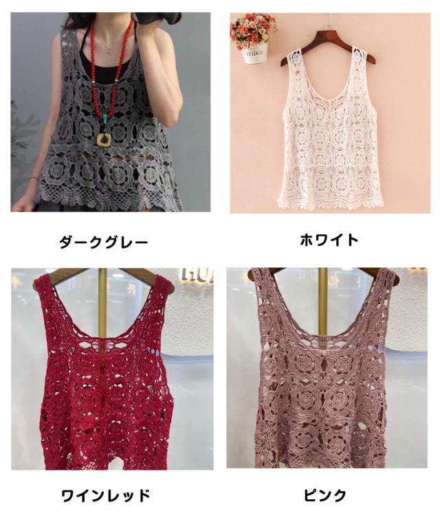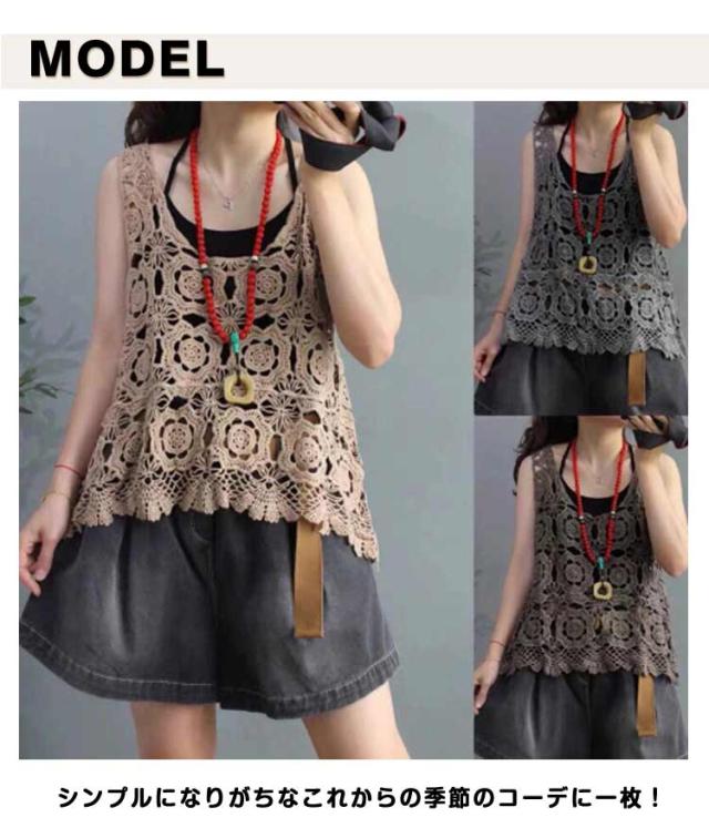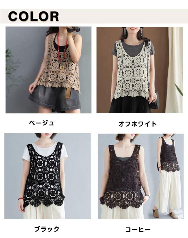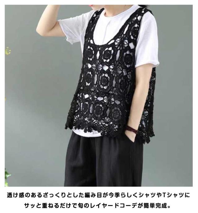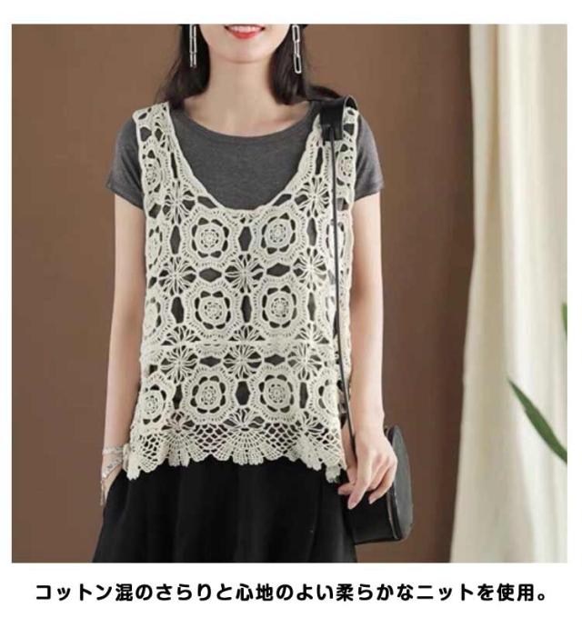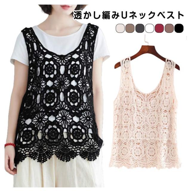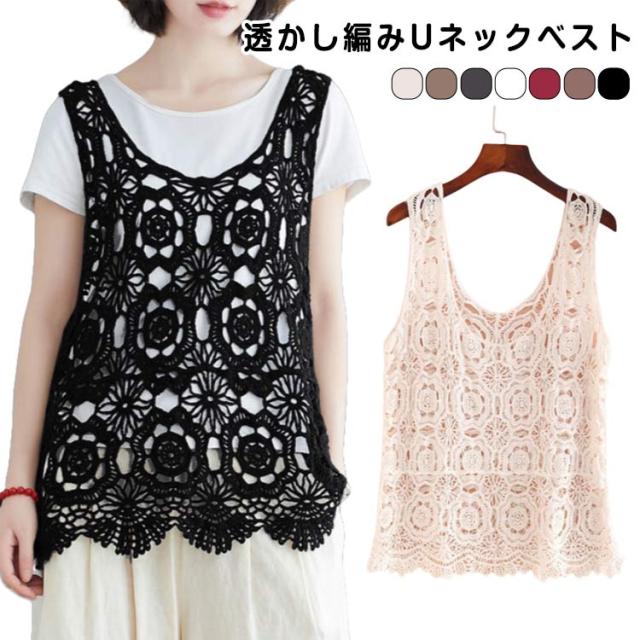 透かし編み ニットベスト プルオーバー 春夏 ノースリーブ ベスト おしゃれ トップス 送料無料 Uネック かぎ編み レース 花柄 クロシェ編み サマーニット きれいめ カジュアル レディース 無地 レイヤード 重ね着 袖なし 春 夏 秋 おしゃれ かわいい