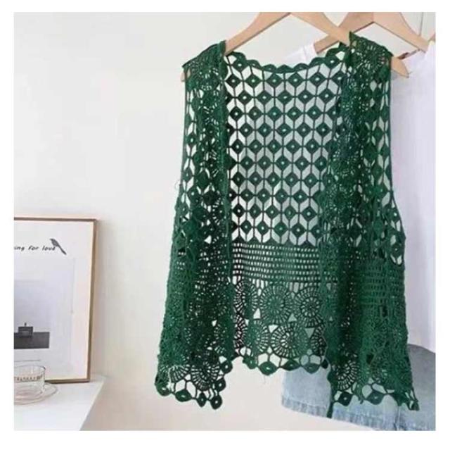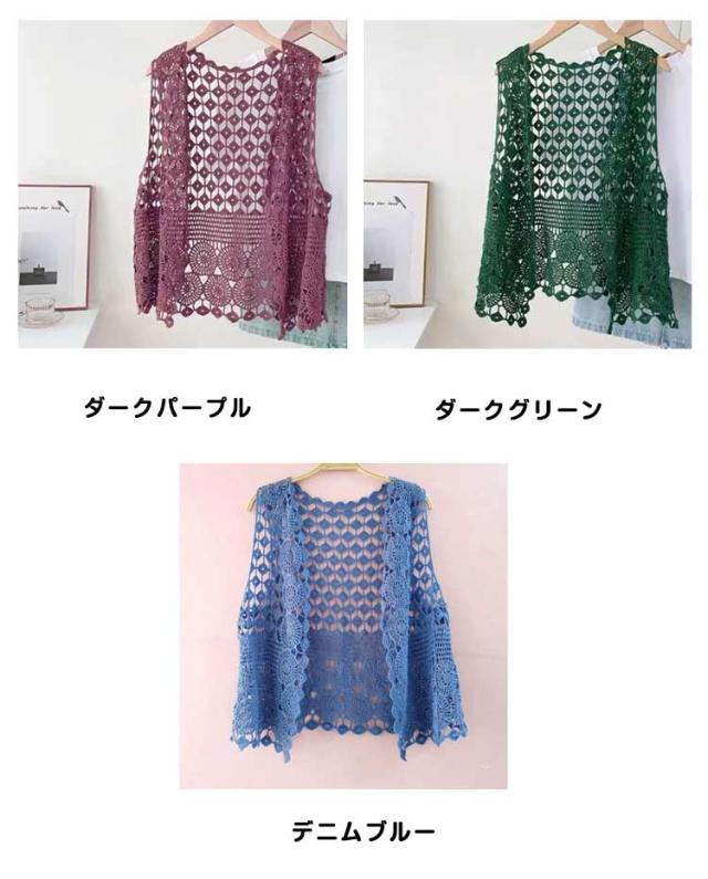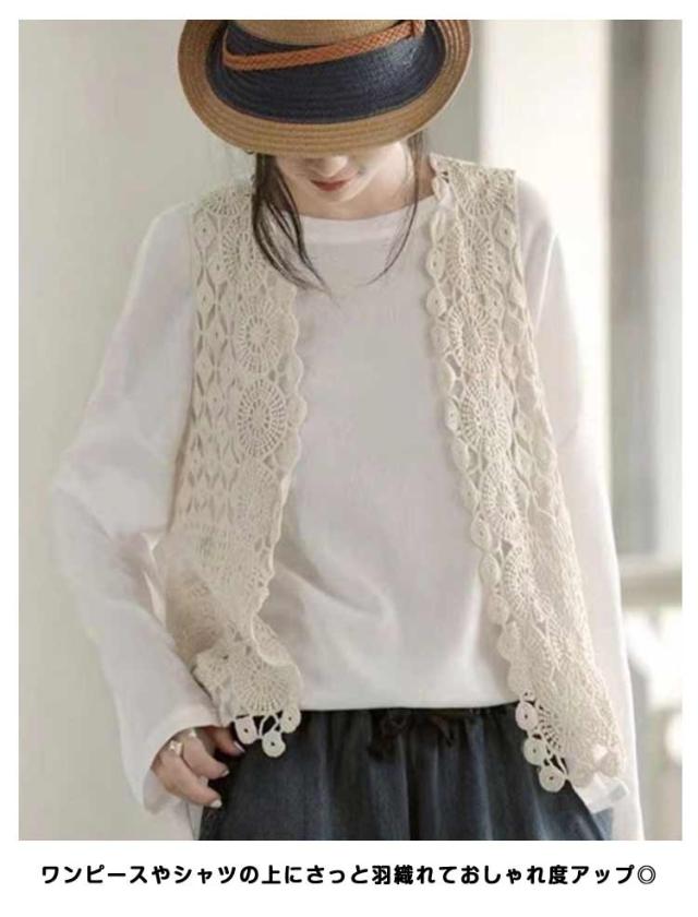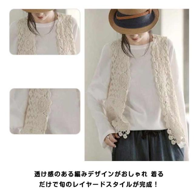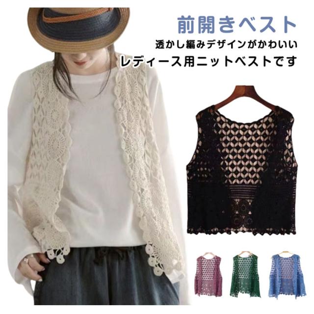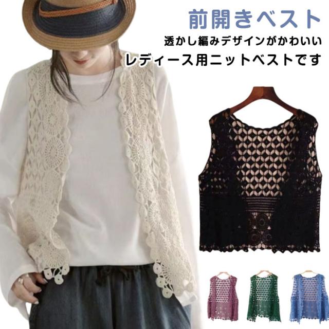 カーディガン レディース ベスト ジレ 透かし編み 前開き 春夏 ベスト 羽織り 薄手 ニット トップス かぎ編み サマーベスト サークル模様 ひし形 ノースリーブ ニットベスト アウター ゆったり 綿 重ね着 レイヤード おしゃれ 可愛い 春 夏 秋
