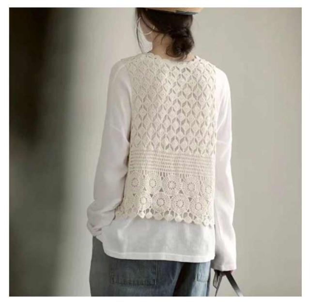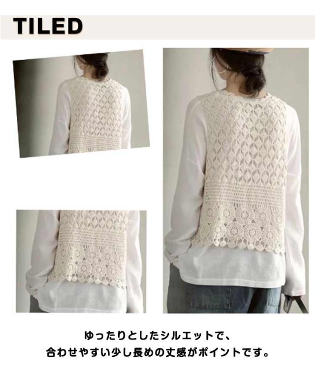 | 前開きベスト。透かし編みデザインがかわいいレディース用ニットベストです。 ゆったりとしたシルエットで、合わせやすい少し長めの丈感がポイントです。 透け感のある編みデザインがおしゃれ 着るだけで旬のレイヤードスタイルが完成! ワンピースやシャツの上にさっと羽織れておしゃれ度アップ◎ | |