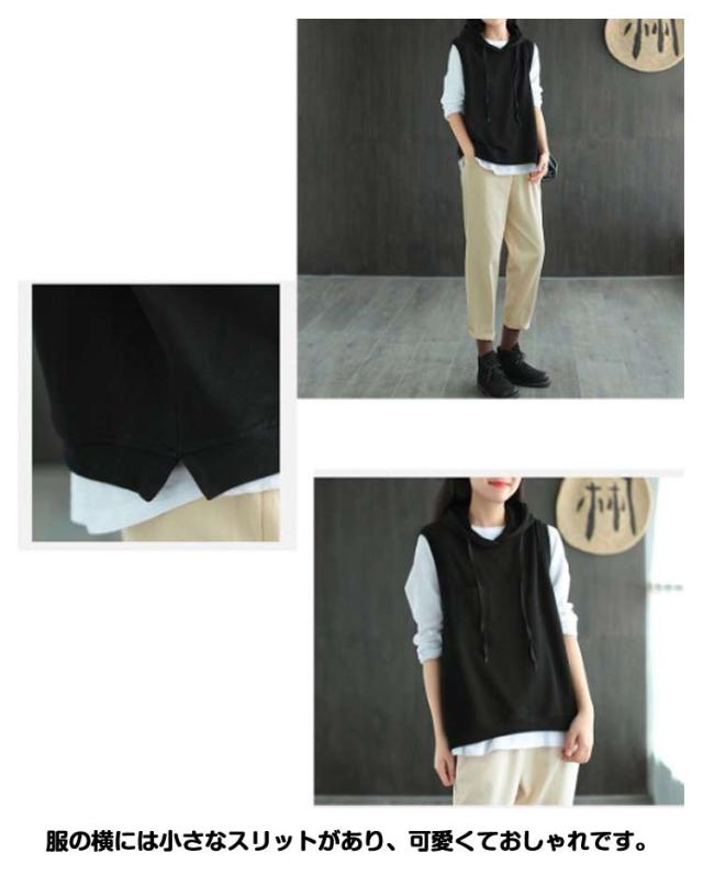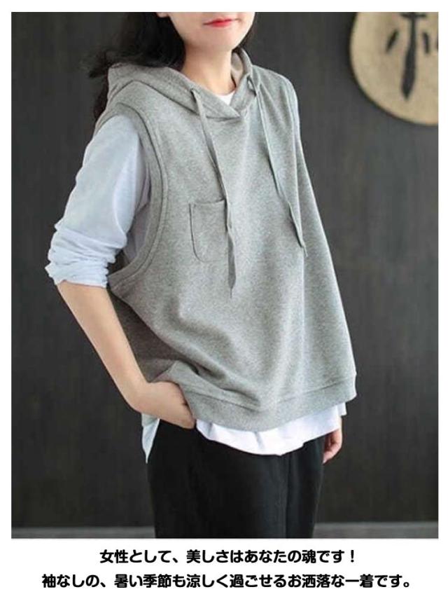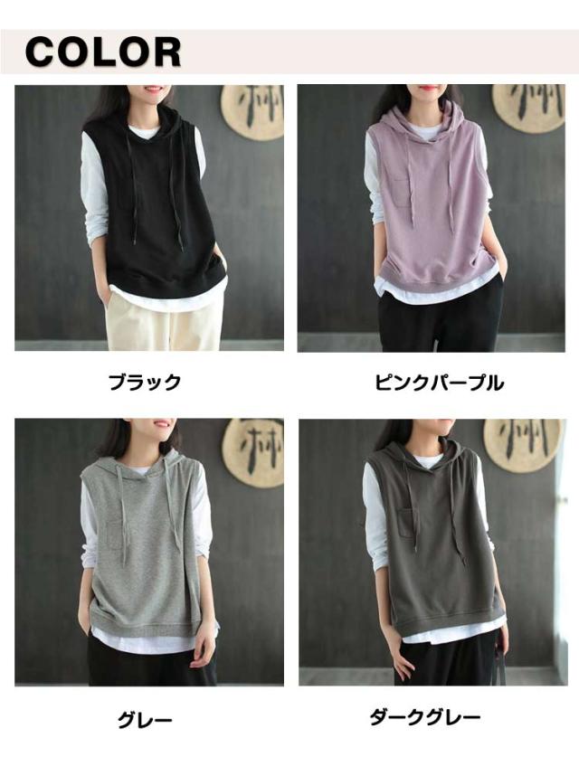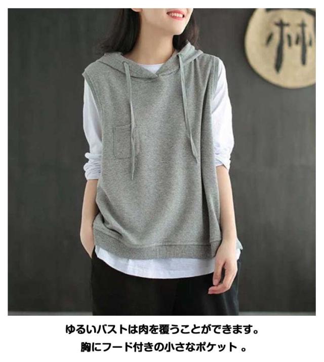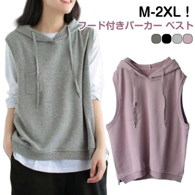 パーカー パーカーベスト ゆったり レディース フード付き ベスト プルオーバー 無地 ベスト ノースリーブ 重ね着 レイヤード トップス おしゃれ かわいい 薄手 ベスト カジュアル 軽い 夏 綿 コットン 春 パーカー 秋
