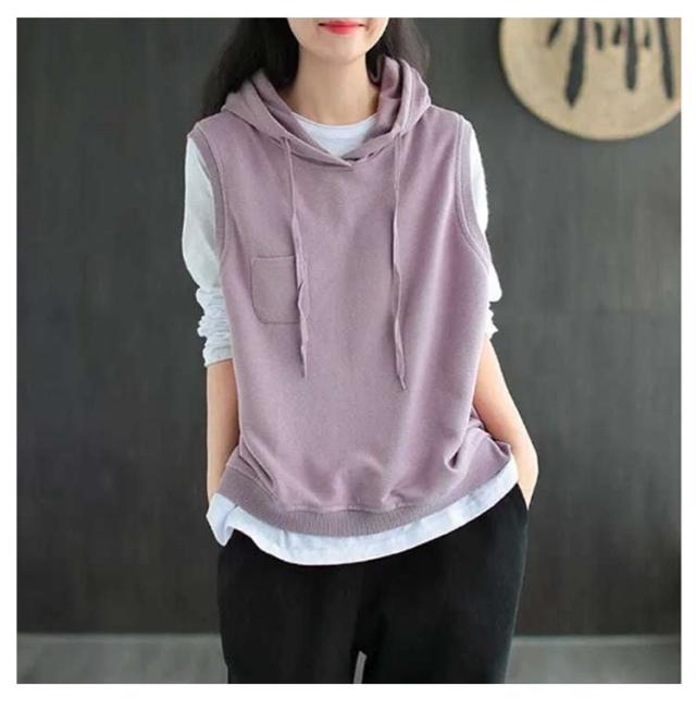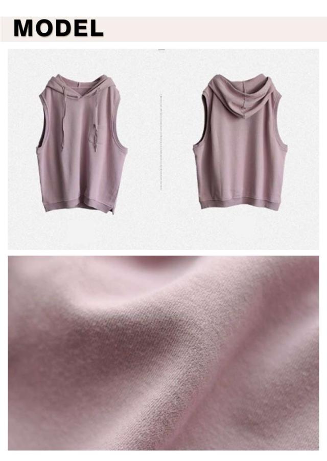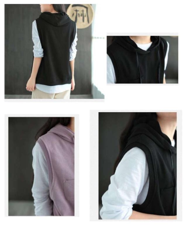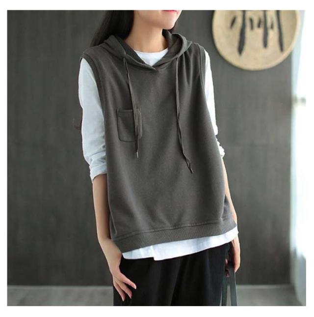 | M-2XL!フード付きパーカー ベスト。 服の横には小さなスリットがあり、可愛くておしゃれです。 ゆるいバストは肉を覆うことができます。 胸にフード付きの小さなポケット 。 女性として、美しさはあなたの魂です!袖なしの、暑い季節も涼しく過ごせるお洒落な一着です。 | |