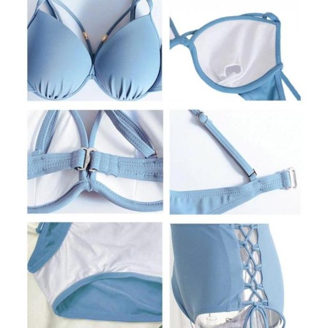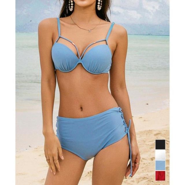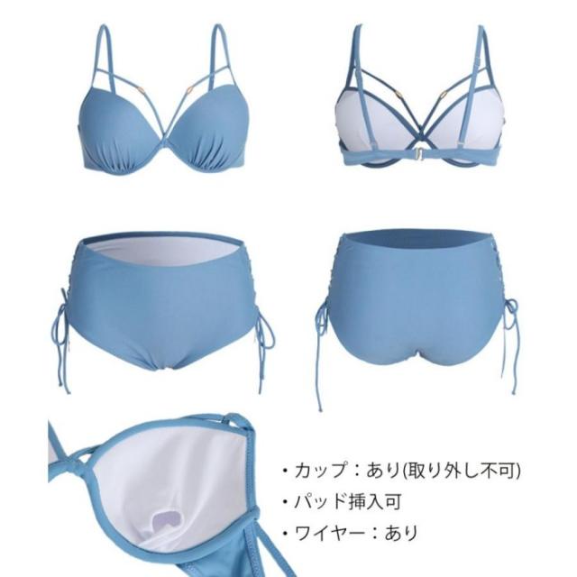 美胸スイムウェア ワイヤー入り 胸ラインビキニ サイドレースアップショーツ 上下2点セット 着やせ 盛れる水着 大人女子