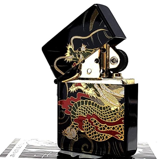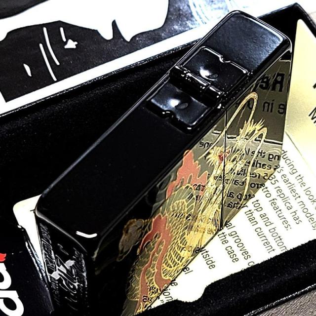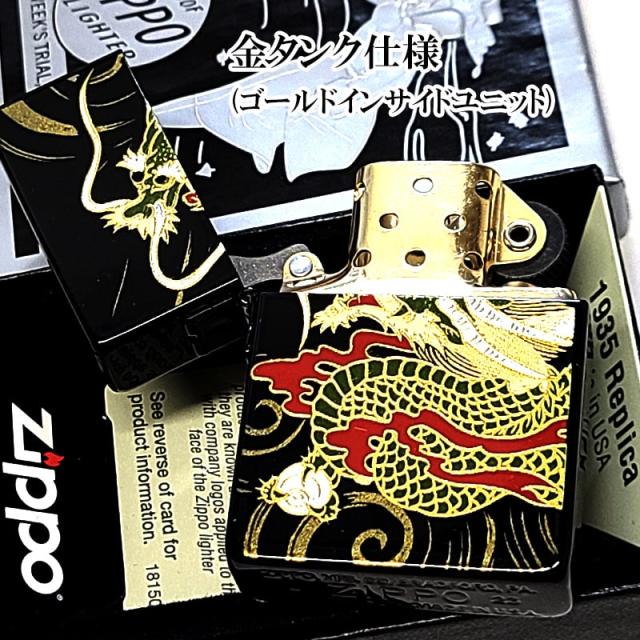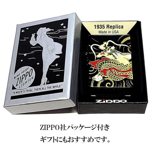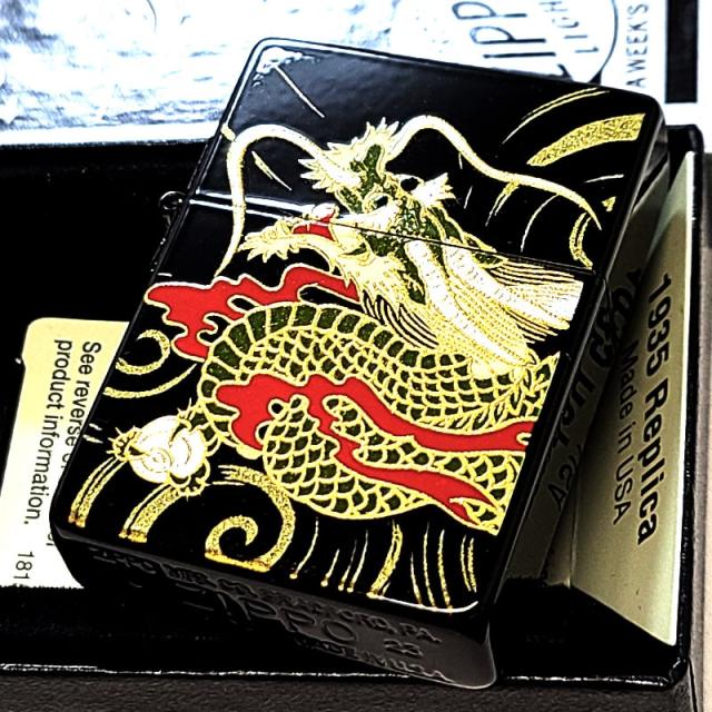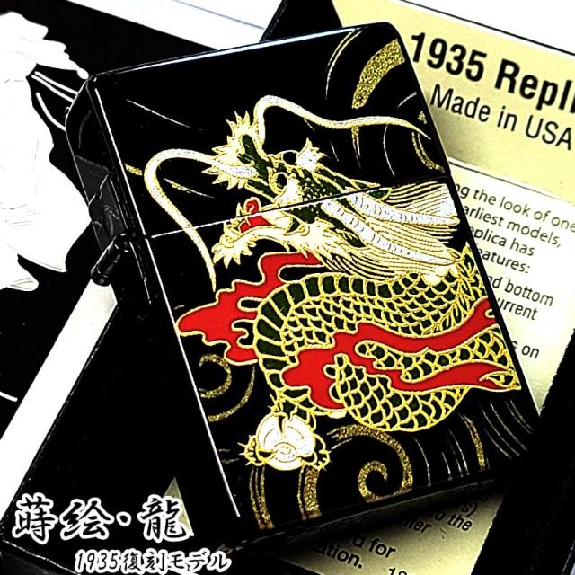 ZIPPO ライター 和柄 1935 復刻レプリカ ジッポ 龍 かっこいい 蒔絵 角型 3バレル ブラック 竜 おしゃれ 日本 高級 金タンク ドラゴン メンズ お守り 黒 ギフト プレゼント 動画あり