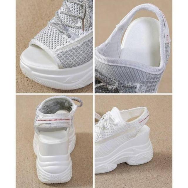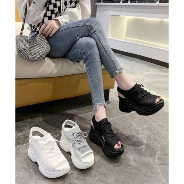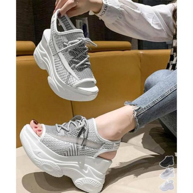 スタイリッシュな厚底メッシュ素材のスポーティオープントゥサンダル。