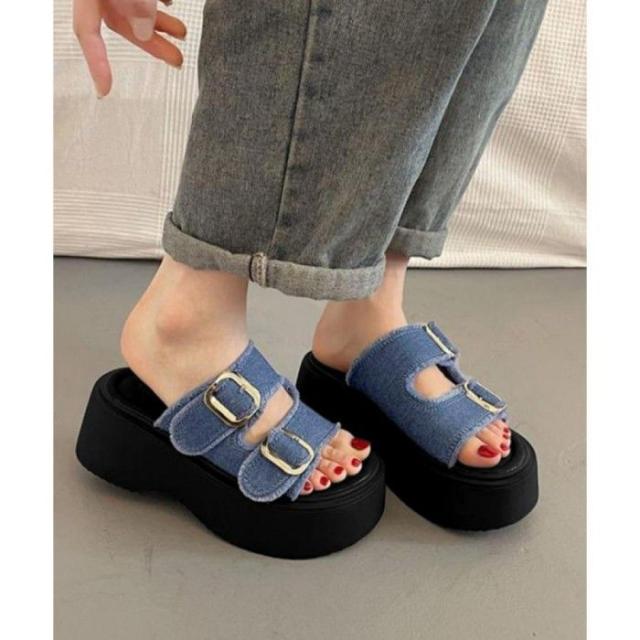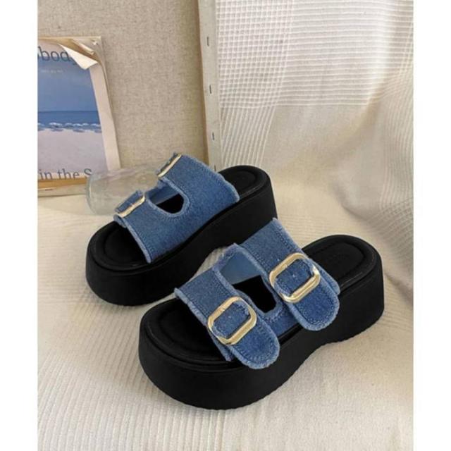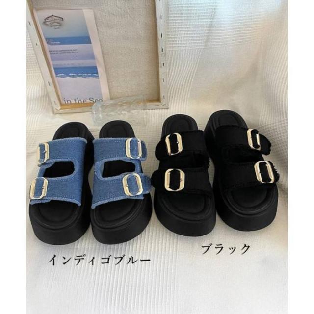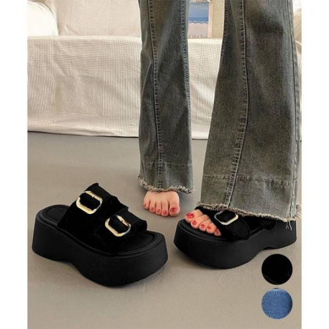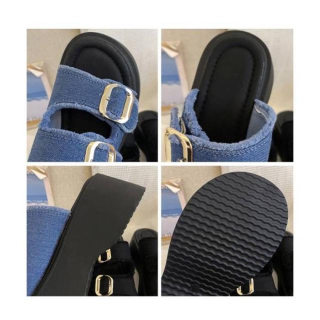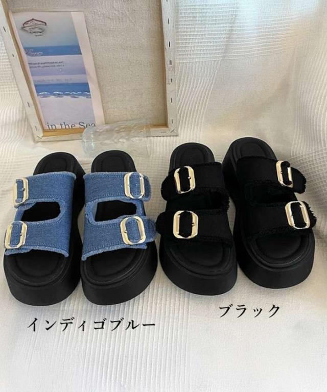 ダブルバックルサンダルデニム厚底サンダル