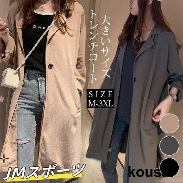 トレンチコート レディース 春 スプリングコート ロングコート アウター ジャケット 春コート ゆったり カジュアル 大きいサイズ 無地 通勤 OL 30代 40代