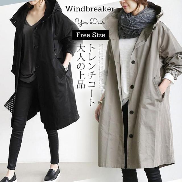トレンチコート ロングコート レディース 春 ロング丈 スプリングコート フード付き ジャケット 大きいサイズ 黒 通勤 カジュアル