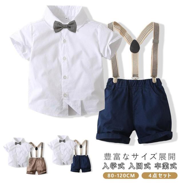 男の子 子供スーツ 夏 入園式 半袖 4点セット フォーマル スーツ 子供 おしゃれ サスペンダー ベビースーツ 七五三 発表会 卒業式 結婚式 初節句 お宮参り