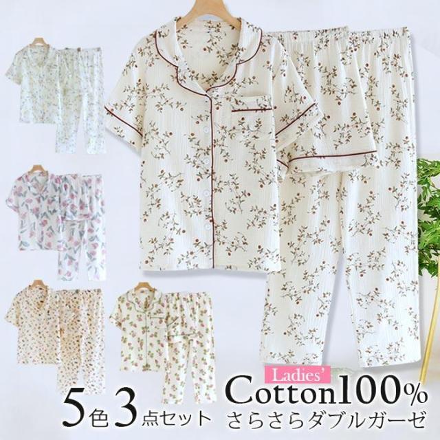ガーゼパジャマ レディース ダブルガーゼルームウエア 上下セット 長袖 綿100% 二重ガーゼ 部屋着 セットアップ 春 夏 さるさる 入院準備 ナイトウエア