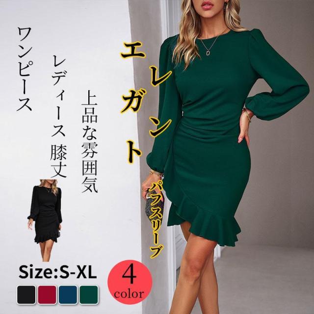 ワンピース レディース ママワンピース長袖 きれいめ 着痩せ 秋 Aライン 膝丈 通勤 結婚式 オシャレ 上品 お洒落 20代 30代 40代