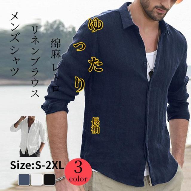 リネンシャツ メンズ 麻 シャツ 長袖 綿麻シャツ シンプル カジュアルシャツ 無地 欧米風 ゆったり 前開 秋新作