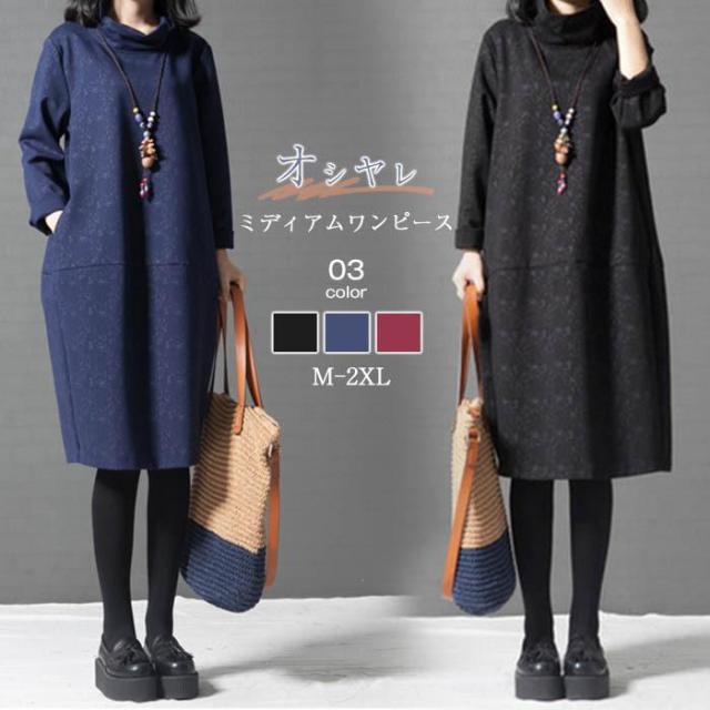 ワンピース レディース 40代 春 秋 長袖 きれいめ ロングワンピース ハイネック 花柄 体型カバー 着痩せ ゆったり カジュアル 大きいサイズ 30代 50代