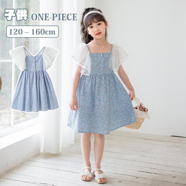 花柄 子供 ドレス ワンピース 子供服 女の子 プリンセス ガールズ キッズ カジュアル 夏休み 旅行 海辺 お出かけ 普段着 入学式 卒業式 膝丈 ミディ丈 ジュニア