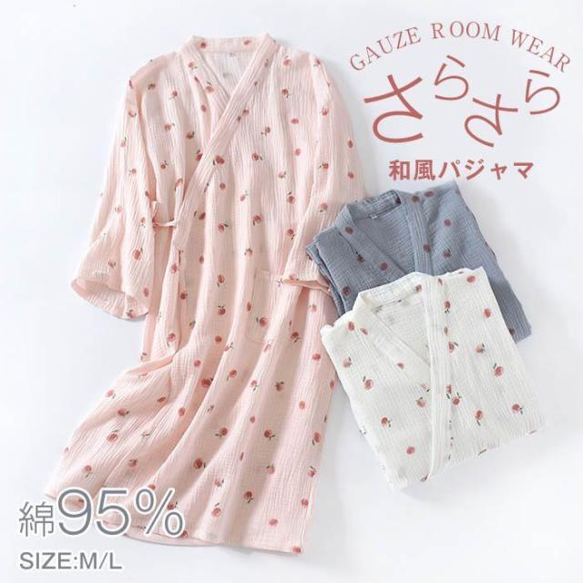 寝巻き ガーゼ 浴衣 ガウン お風呂上がり バスローブ レディース ルームウェア 2重ガーゼ 綿糸 可愛い花柄 和服式 夏素材 旅館 温泉 入院 介護 和風パジャマ 綿
