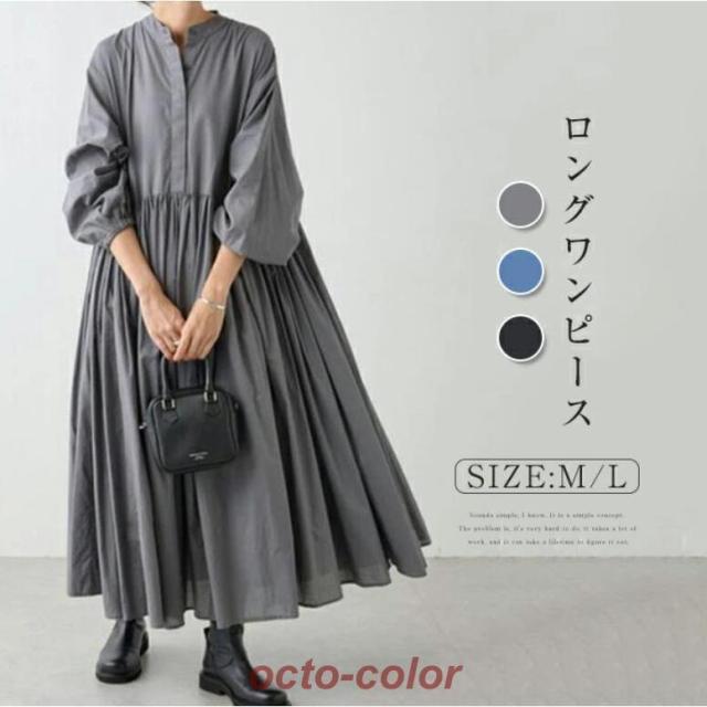 ワンピース シャツワンピース 長袖 レディース ロングワンピース マキシワンピース ギャザー マキシ丈 大人可愛い 大きいサイズ きれいめ 春 夏