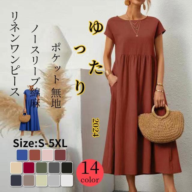 シャツワンピース ワンピース レディース 長袖 ロング丈 マキシワンピース 長袖 ロング丈 マキシ丈 無地 ゆったり 着痩せ 綿・リネン 綿麻