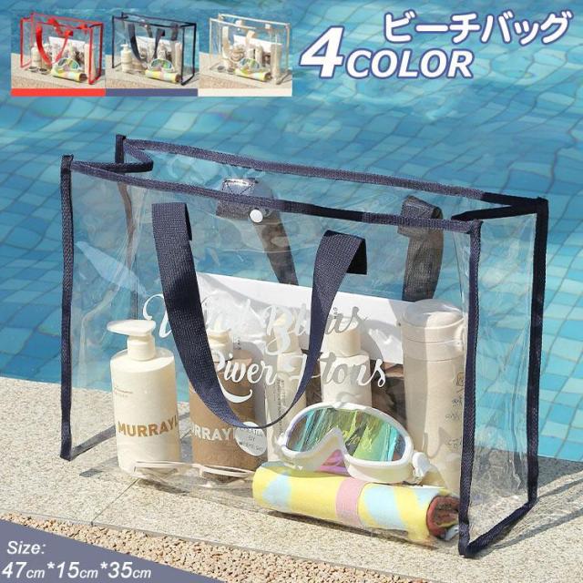 ビーチバッグ 透明 プールバッグ 軽量 バッグ かばん ビーチ 水泳 ジム 温泉 旅行 アウトドア用 運動 スポーツ 大容量 クリアーカラーバッグ スイミングバッグ