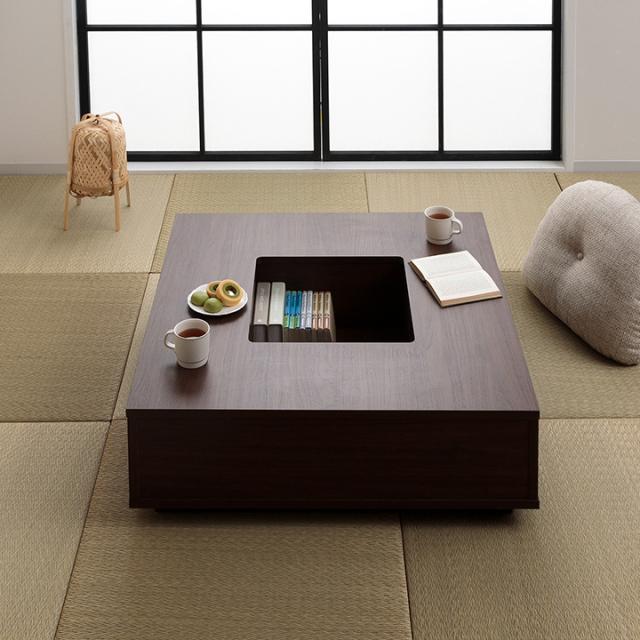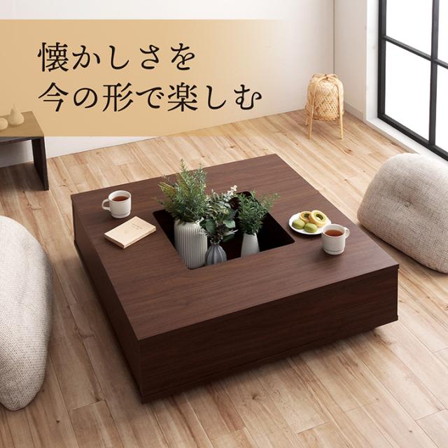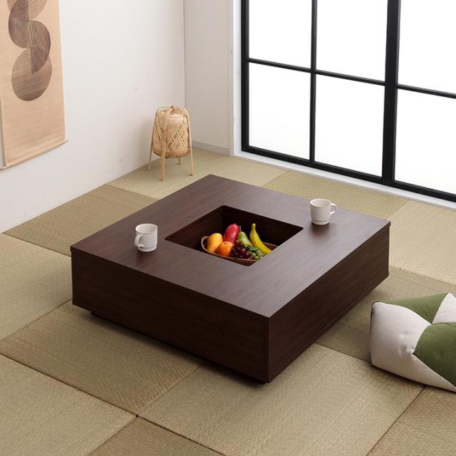 囲炉裏風テーブル 90cm幅 正方形 リビング テーブル センターテーブル 和室 洋室 畳 ベンチ 収納 正方形 シンプル 和モダン